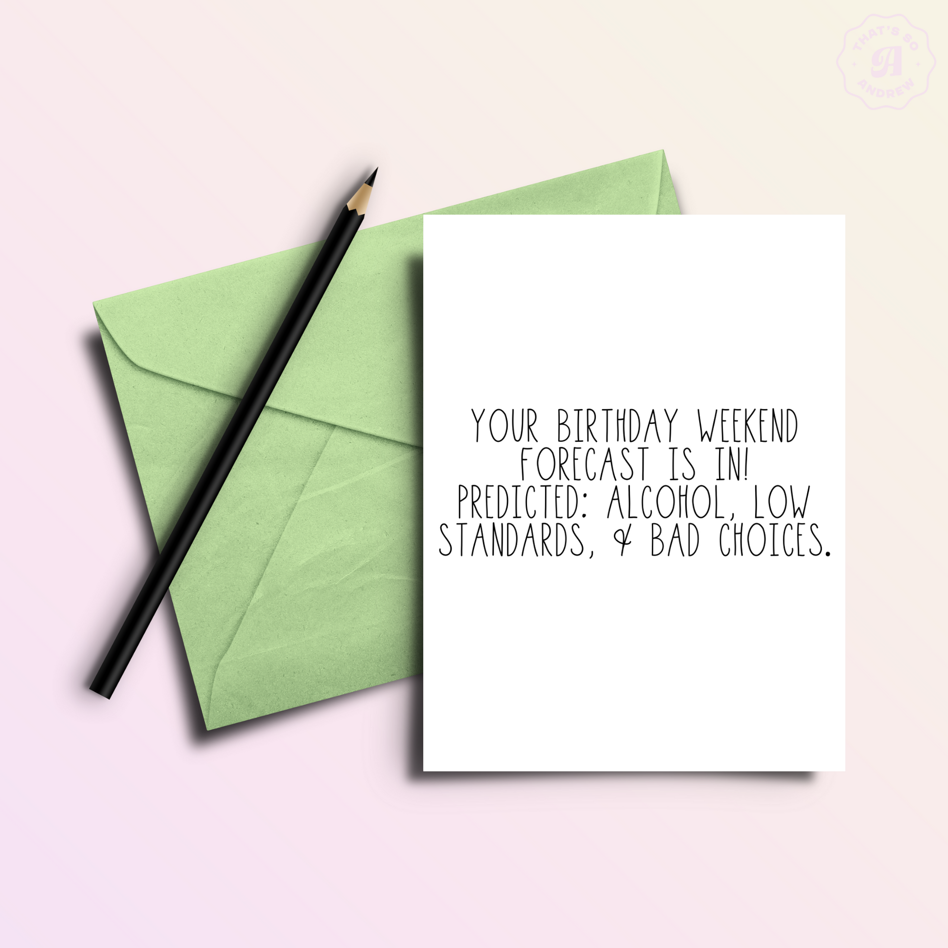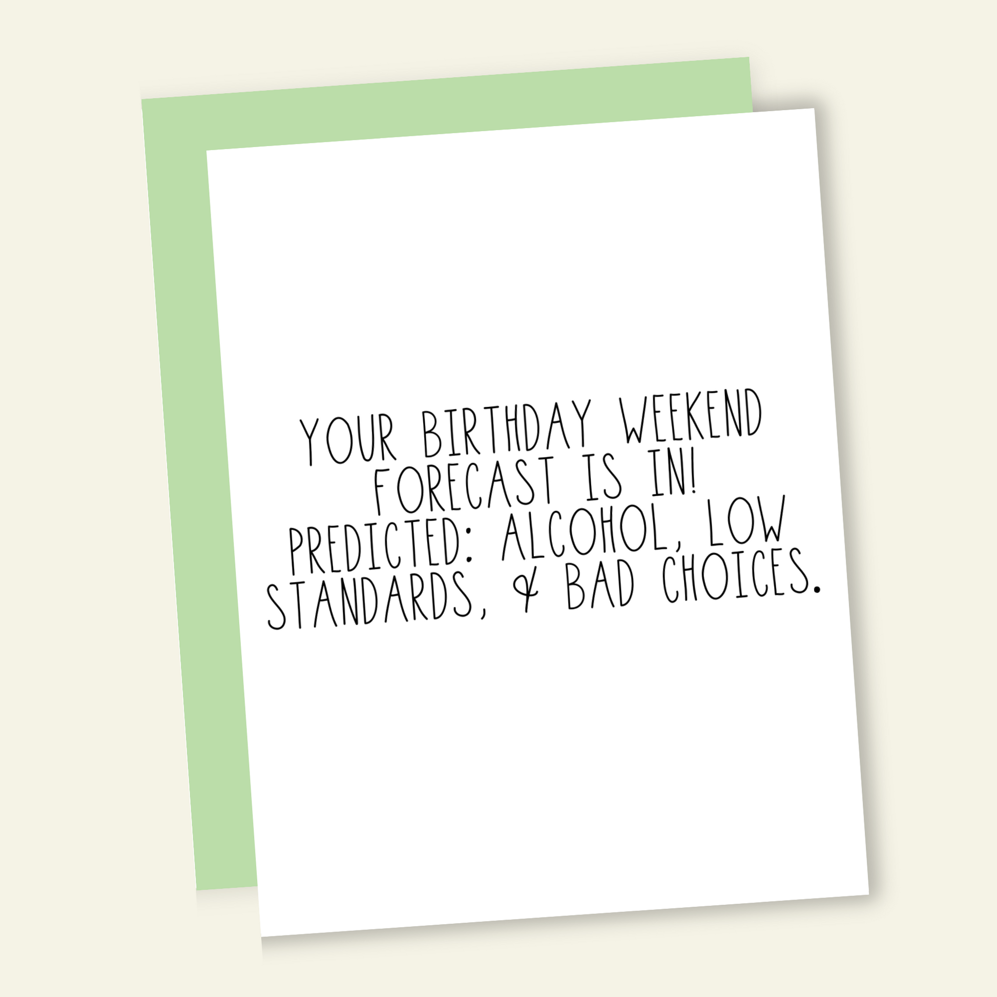 Birthday Weekend Forecast: Alcohol + Bad Decisions Card