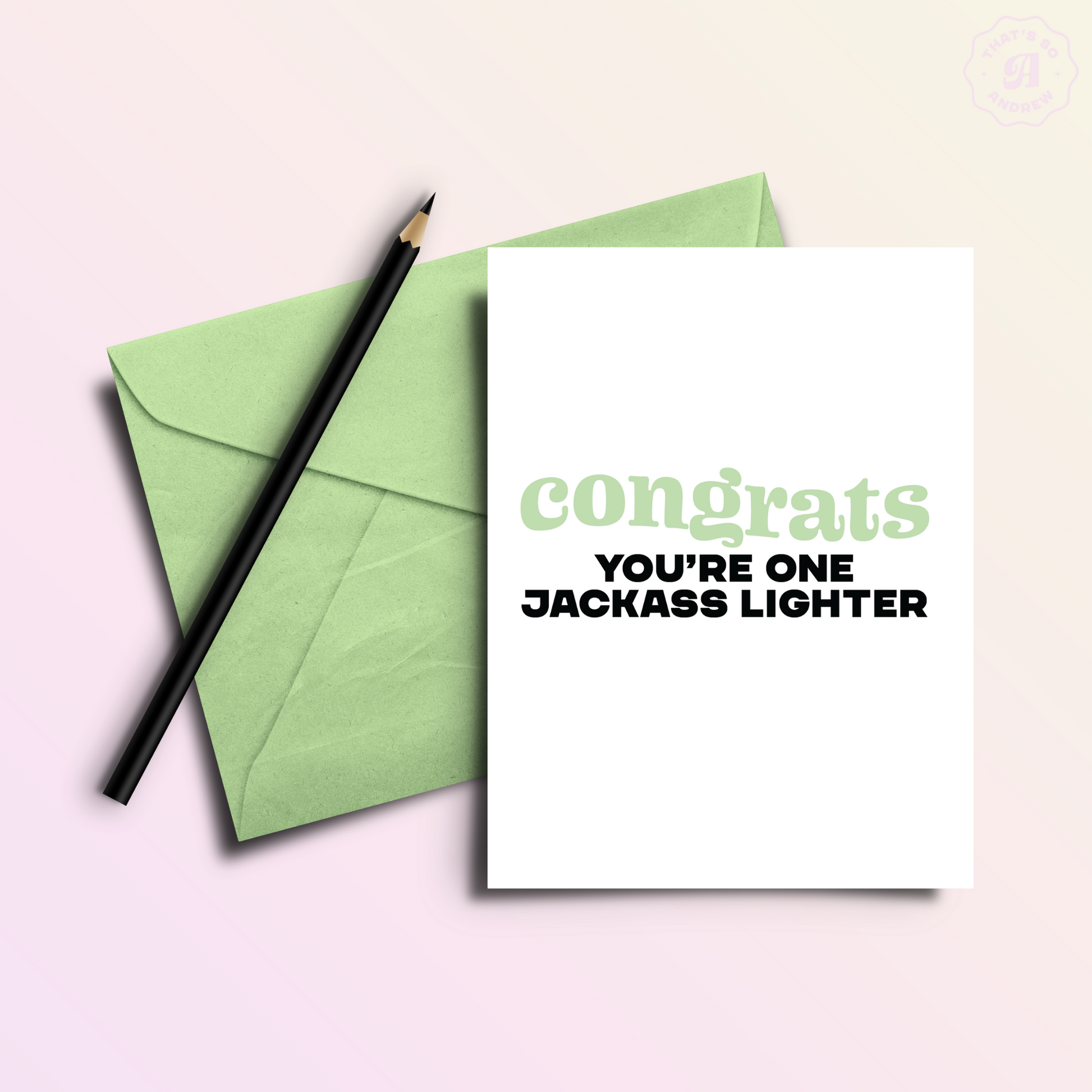 That's So Andrew greeting cards are printed, designed, and packaged in our Monroe, Washington studio by Andrew and his team. Crafted with quality paper and paired with a gorgeous color envelope.