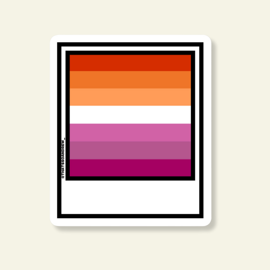 Disclaimer: We updated the artwork for this sticker on October 25th, 2023 after a friend notified Andrew that we were using an outdated flag that no longer represents the majority of the Lesbian community. We apologize for our ignorance to the community and will replace any old inventory you may have, just send us a message before 12/31.